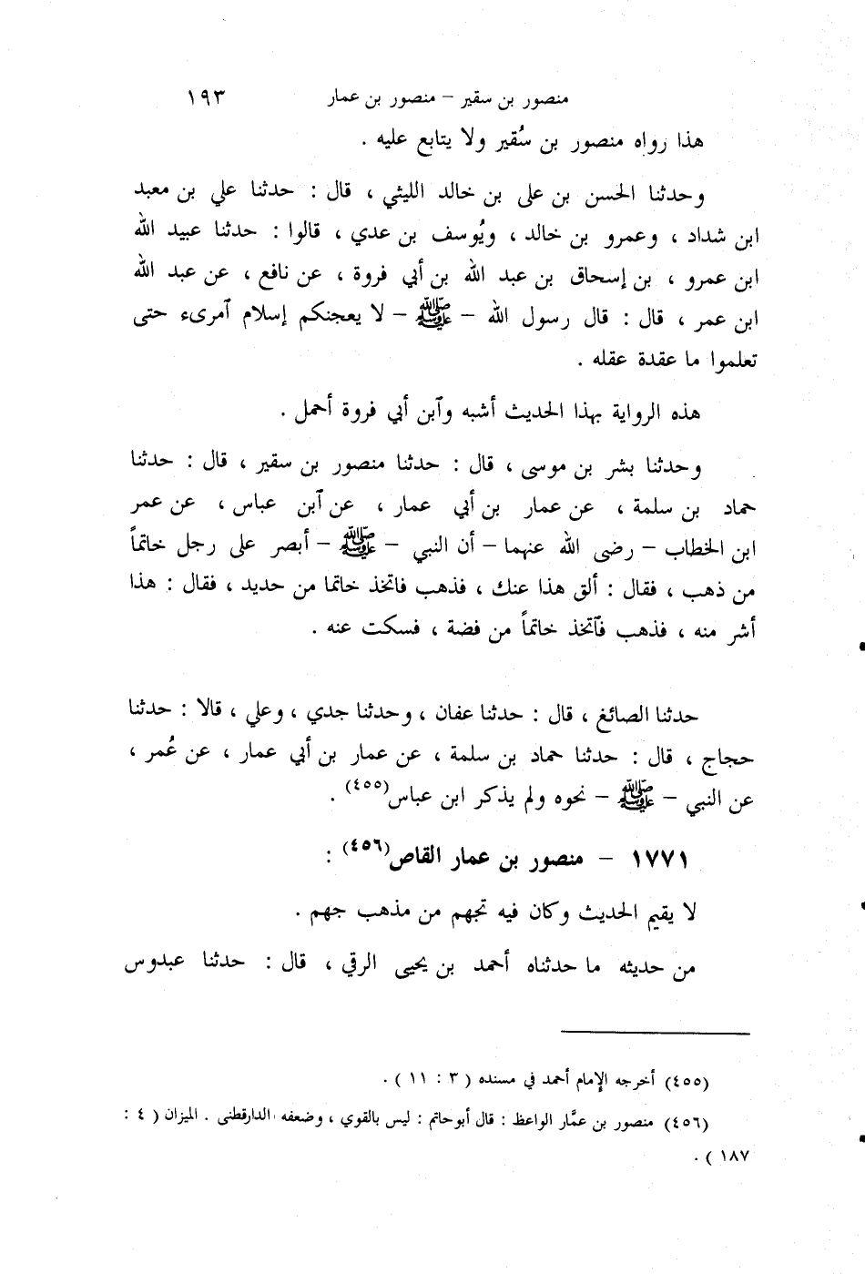 §1771 - مَنْصُورُ بْنُ عَمَّارٍ الْقَاصُّ لَا يُقِيمُ الْحَدِيثَ , وَكَانَ فِيهِ تَجَهُّمٌ مِنْ مَذْهَبِ جَهْمٍ