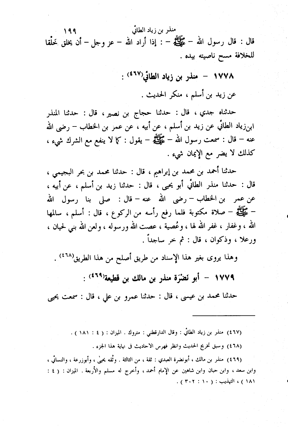 §1778 - مُنْذِرُ بْنُ زِيَادٍ الطَّائِيُّ عَنْ زَيْدِ بْنِ أَسْلَمَ مُنْكَرُ الْحَدِيثِ