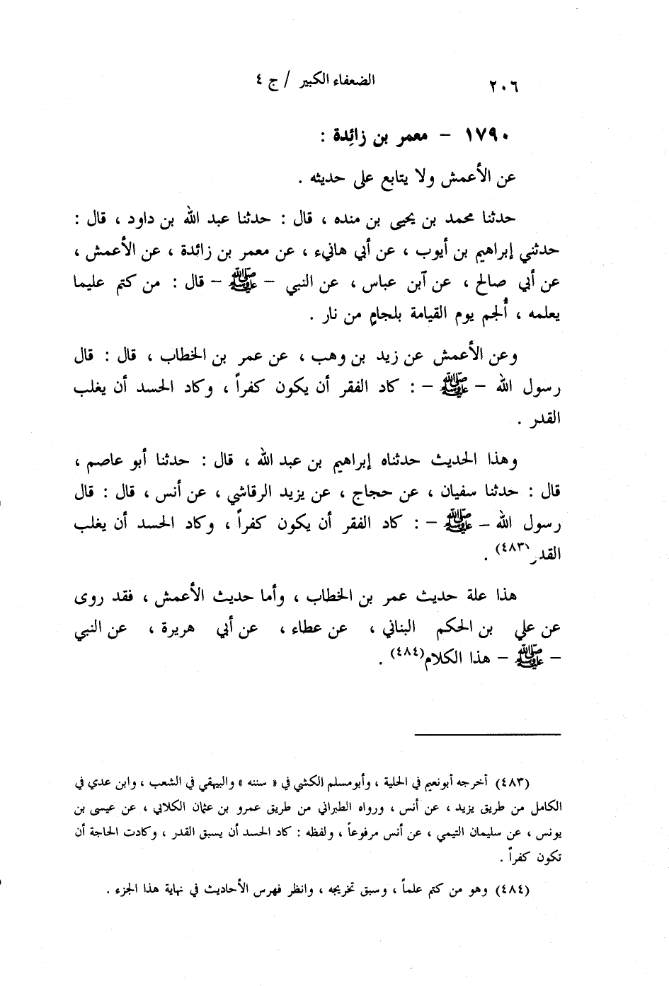 §1790 - مَعْمَرُ بْنُ زَائِدَةَ عَنِ الْأَعْمَشِ وَلَا يُتَابَعُ عَلَى حَدِيثِهِ