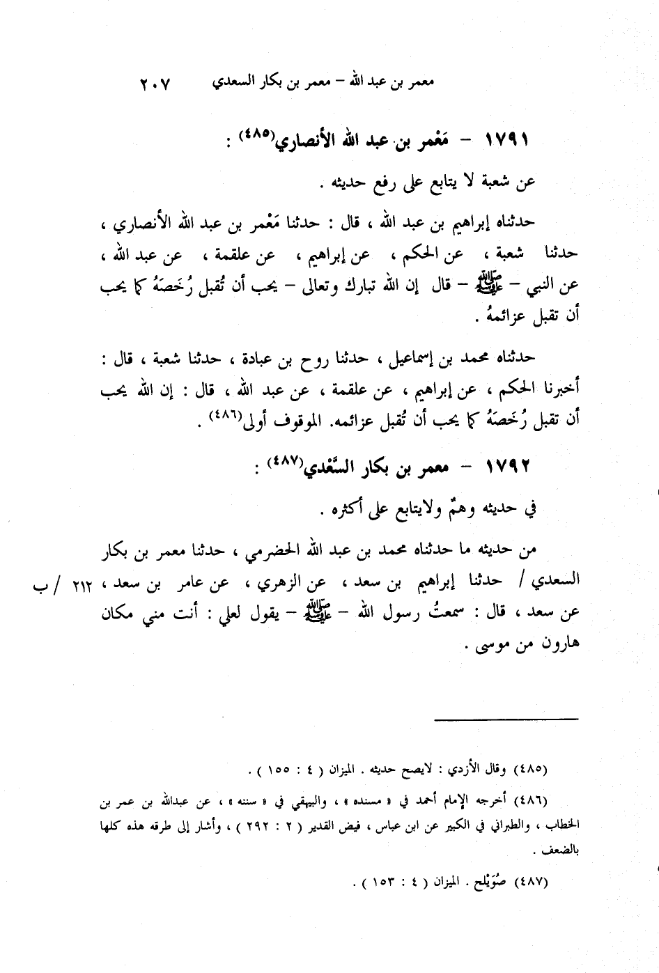 §1792 - مَعْمَرُ بْنُ بَكَّارٍ السَّعْدِيُّ فِي حَدِيثِهِ وَهْمٌ , وَلَا يُتَابَعُ عَلَى أَكْثَرِهِ