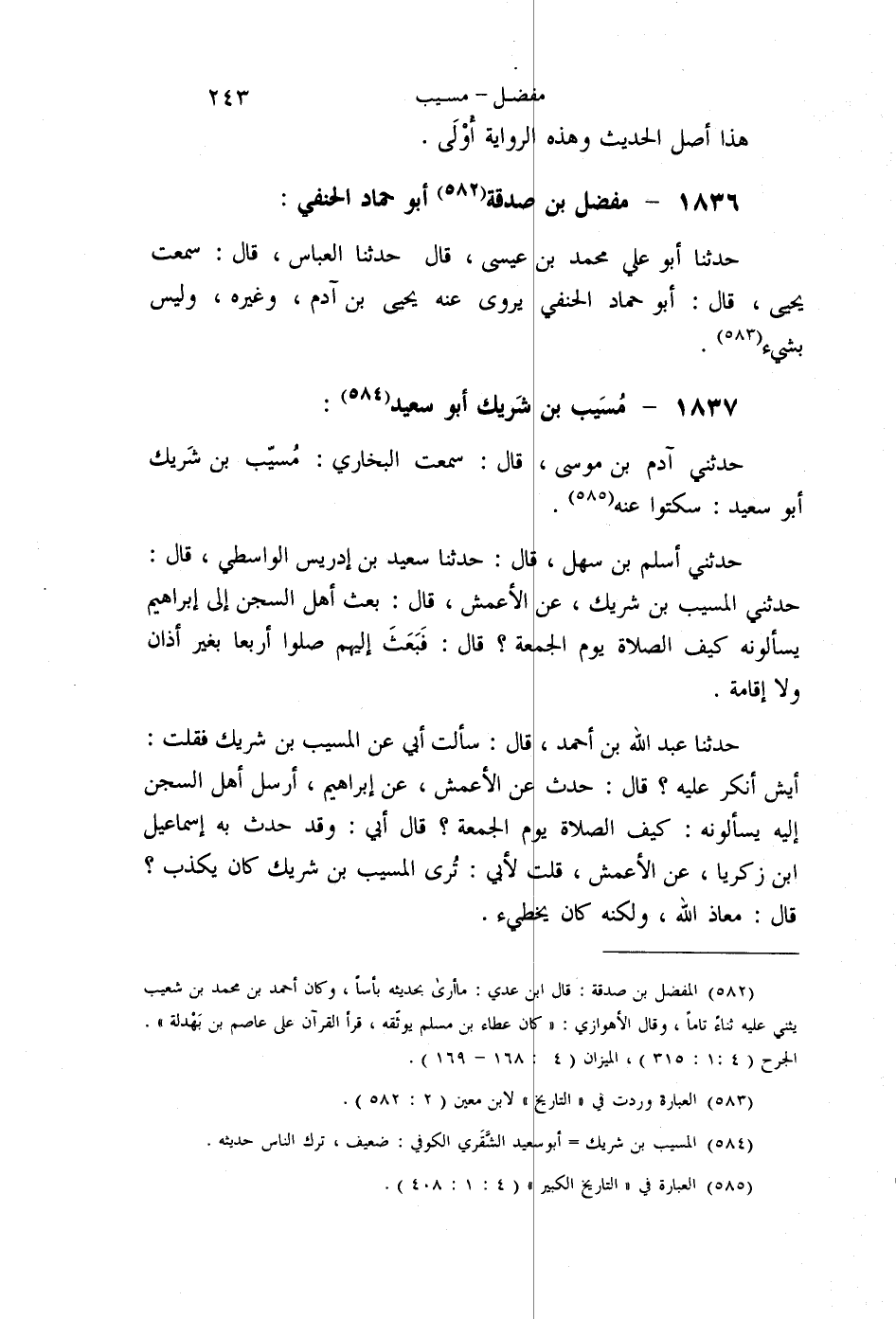 §1837 - مُسَيَّبُ بْنُ شَرِيكٍ أَبُو سَعِيدٍ حَدَّثَنِي آدَمُ بْنُ مُوسَى قَالَ: سَمِعْتُ الْبُخَارِيَّ: مُسَيَّبُ بْنُ شَرِيكٍ أَبُو سَعِيدٍ سَكَتُوا عَنْهُ