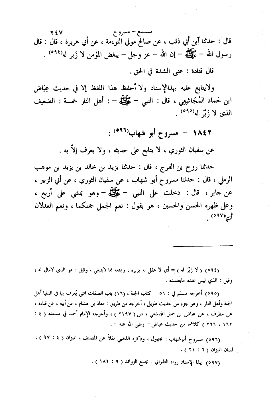 §1842 - مَسْرُوحٌ أَبُو شِهَابٍ عَنْ سُفْيَانَ الثَّوْرِيِّ، لَا يُتَابَعُ عَلَى حَدِيثِهِ وَلَا يُعْرَفُ إِلَّا بِهِ