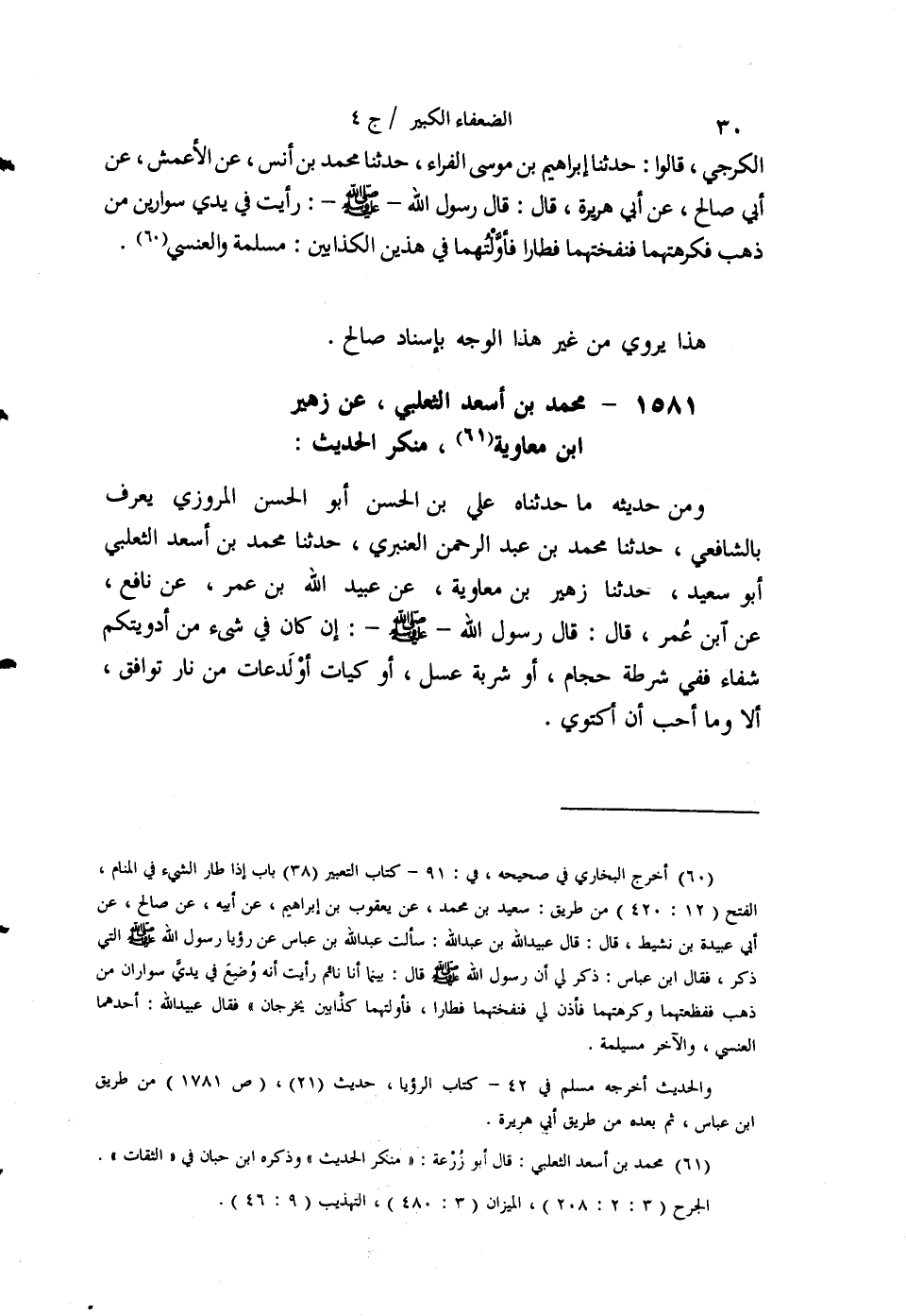 §1581 - مُحَمَّدُ بْنُ أَسْعَدَ الثَّعْلَبِيُّ عَنْ زُهَيْرِ بْنِ مُعَاوِيَةَ، مُنْكَرُ الْحَدِيثِ