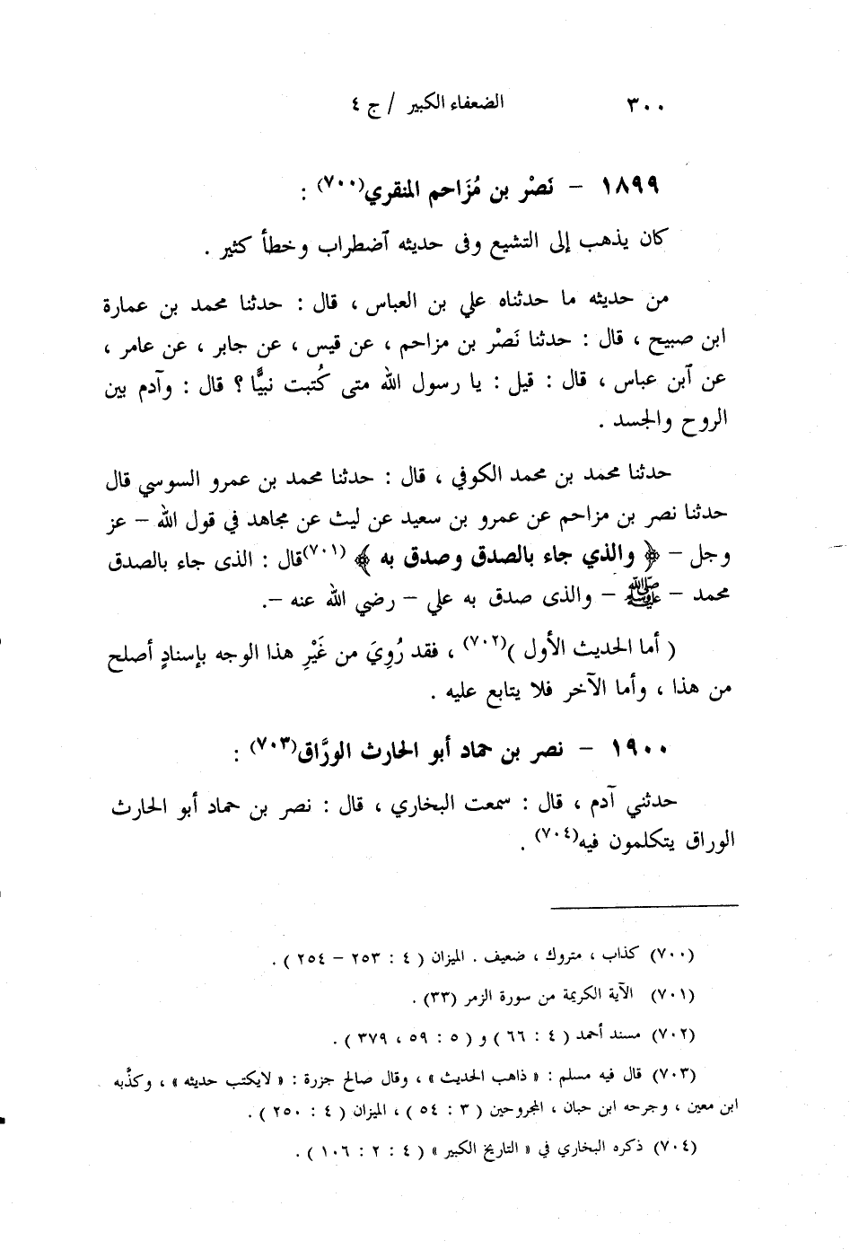 §1900 - نَصْرُ بْنُ حَمَّادٍ أَبُو الْحَارِثِ الْوَرَّاقُ حَدَّثَنِي آدَمُ قَالَ: سَمِعْتُ الْبُخَارِيَّ قَالَ: نَصْرُ بْنُ حَمَّادٍ أَبُو الْحَارِثِ الْوَرَّاقُ يَتَكَلَّمُونَ فِيهِ