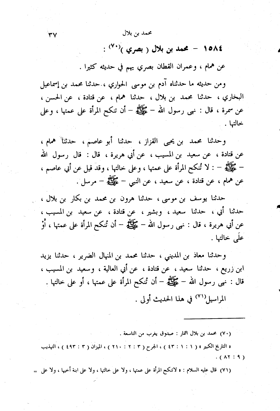 §1584 - مُحَمَّدُ بْنُ بِلَالٍ، بَصْرِيٌّ عَنْ هَمَّامٍ، وَعِمْرَانَ الْقَطَّانِ، بَصْرِيٌّ يَهِمُ فِي حَدِيثِهِ كَثِيرًا
