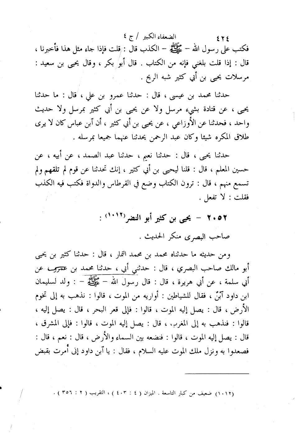 §2052 - يَحْيَى بْنُ كَثِيرٍ أَبُو النَّضْرِ صَاحِبُ الْبَصْرِيِّ مُنْكَرُ الْحَدِيثِ