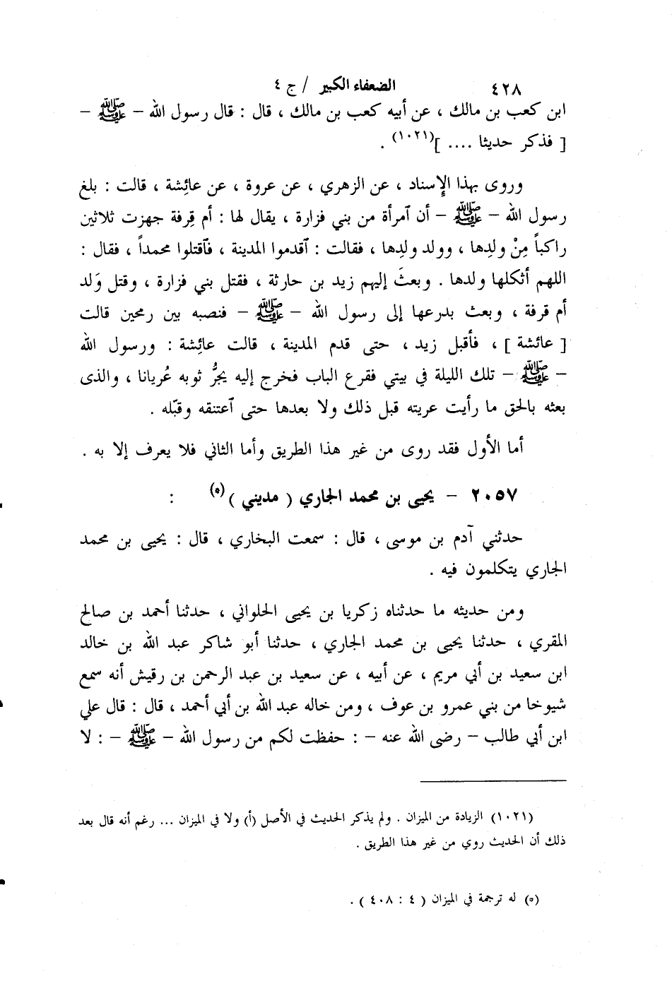 §2057 - يَحْيَى بْنُ مُحَمَّدٍ الْجَارِي مَدِينِيٌّ حَدَّثَنِي آدَمُ بْنُ مُوسَى قَالَ: سَمِعْتُ الْبُخَارِيَّ قَالَ: يَحْيَى بْنُ مُحَمَّدٍ الْجَارِي يَتَكَلَّمُونَ فِيهِ