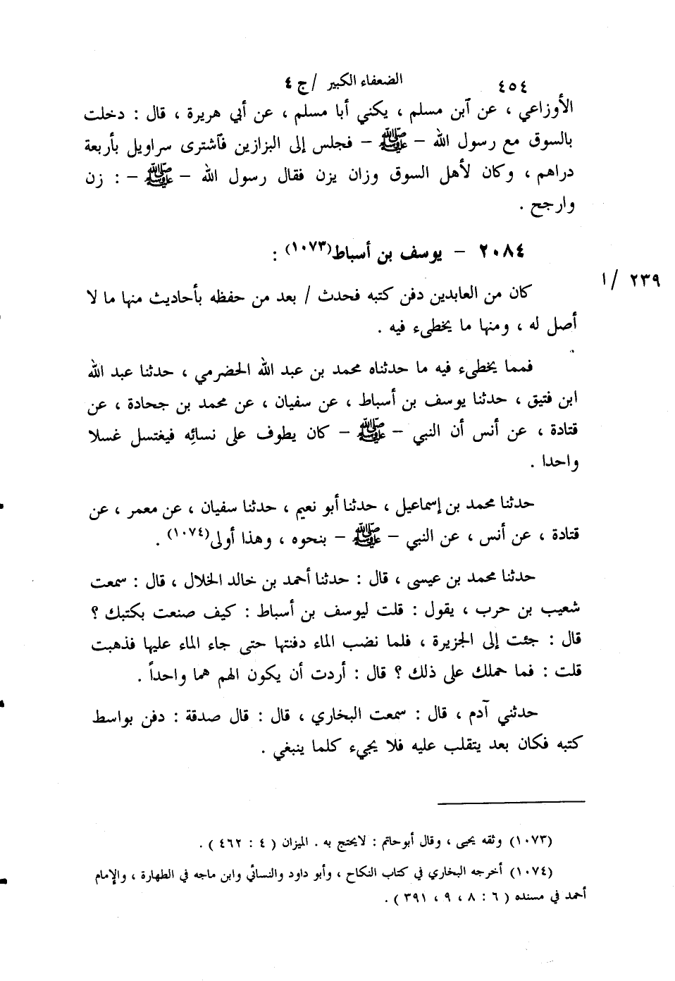 §2084 - يُوسُفُ بْنُ أَسْبَاطٍ كَانَ مِنَ الْعَابِدِينَ دَفَنَ كُتُبَهُ , فَحَدَّثَ بَعْدُ، مِنْ حِفْظِهِ بِأَحَادِيثَ مِنْهَا مَا لَا أَصْلَ لَهُ , وَمِنْهَا مَا يُخْطِئُ فِيهِ