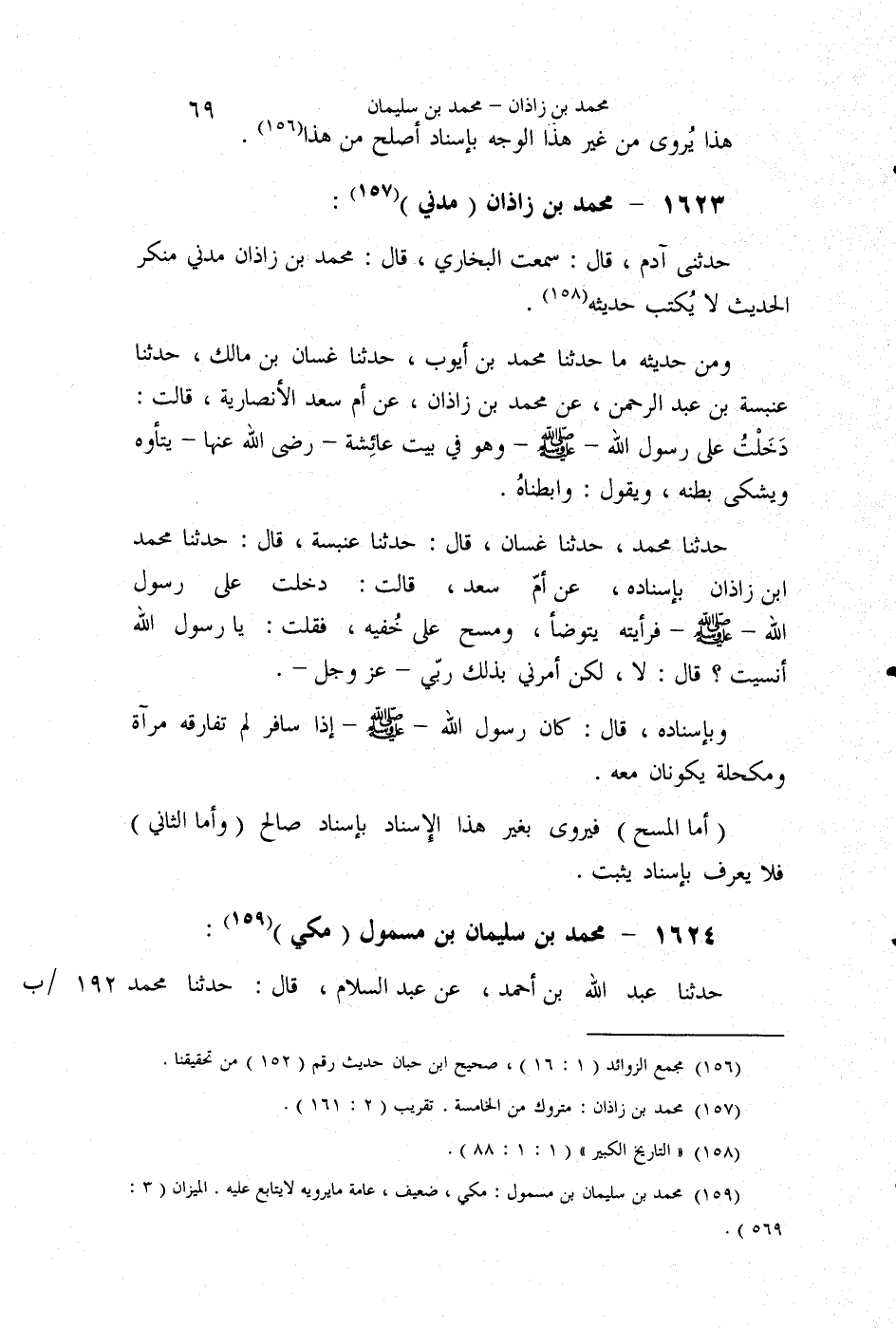 §1623 - مُحَمَّدُ بْنُ زَاذَانَ مَدَنِيٌّ حَدَّثَنِي آدَمُ قَالَ: سَمِعْتُ الْبُخَارِيَّ قَالَ: مُحَمَّدُ بْنُ زَاذَانَ مَدَنِيٌّ مُنْكَرُ الْحَدِيثِ , لَا يُكْتَبُ حَدِيثُهُ