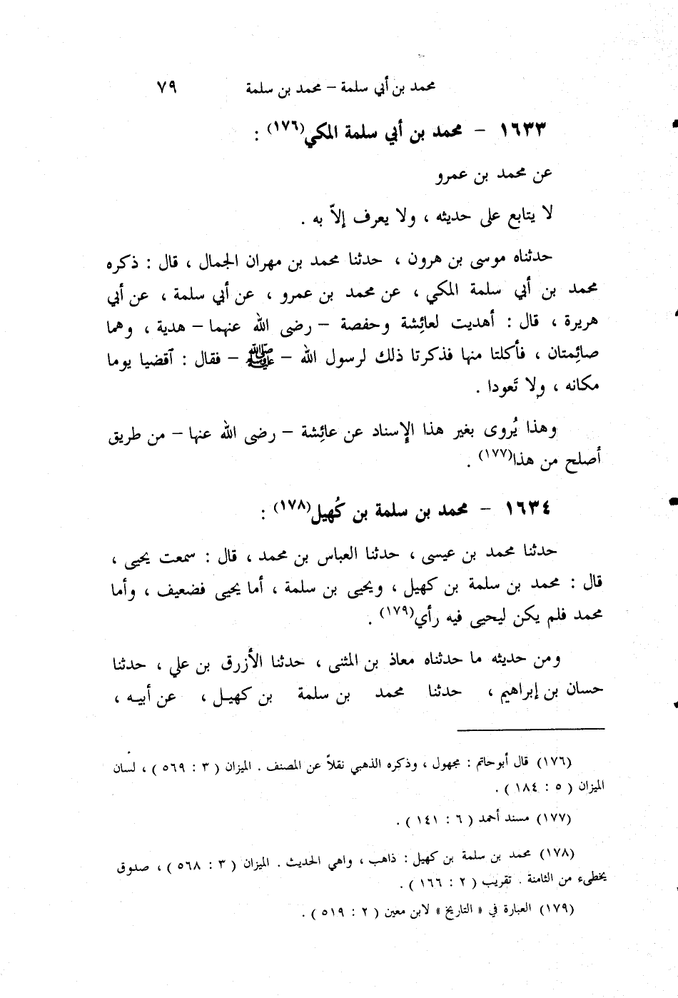 §1633 - مُحَمَّدُ بْنُ أَبِي سَلَمَةَ الْمَكِّيُّ عَنْ مُحَمَّدِ بْنِ عَمْرٍو، لَا يُتَابَعُ عَلَى حَدِيثِهِ , وَلَا يُعْرَفُ إِلَّا بِهِ