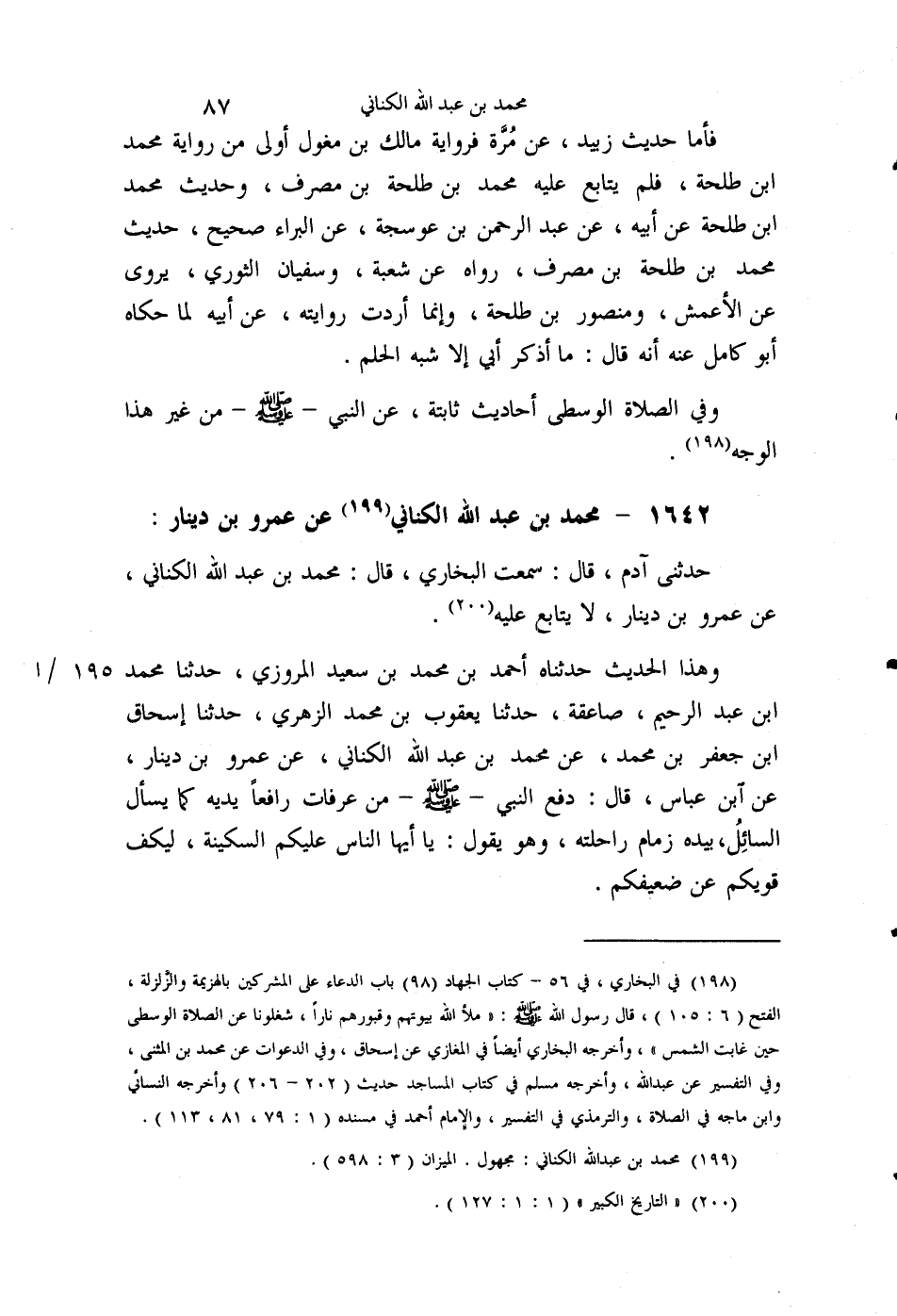 §1642 - مُحَمَّدُ بْنُ عَبْدِ اللَّهِ الْكِنَانِيُّ عَنْ عَمْرِو بْنِ دِينَارٍ. حَدَّثَنِي آدَمُ قَالَ: سَمِعْتُ الْبُخَارِيَّ قَالَ: مُحَمَّدُ بْنُ عَبْدِ اللَّهِ الْكِنَانِيُّ , عَنْ عَمْرِو بْنِ دِينَارٍ، لَا يُتَابَعُ عَلَيْهِ