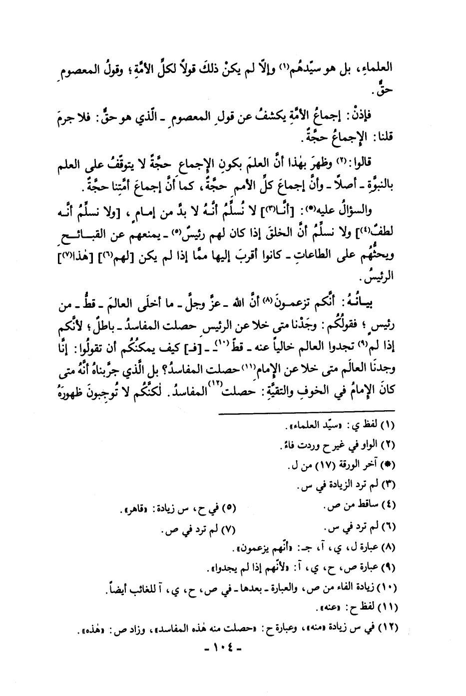 العلماء بل هو سيدهم وإلا لم يكن ذلك قولا لكل الأمة وقول المعصوم حق فإذن إجماع الأمة يكشف عن قول المعصوم الذي هو حق فلا جرم قلنا الإجماع حجة قالوا وظهر بهذا أن العلم بكون الإجماع حجة لا يتوقف على العلم بالنبوة أصلا وأن إجماع كل الأمم حجة كما أن إجماع أمتنا حجة والسؤال عليه أنا لا نسلم أنه لا بد من إمام ولا نسلم أنه
