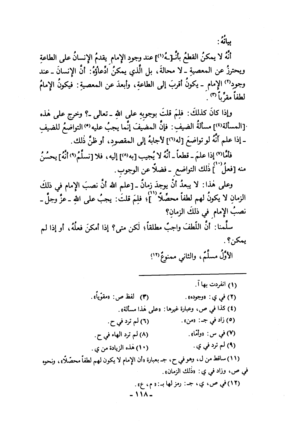 فأما إذا علم قطعا أنه لا يجيب به إليه فلا نسلم أنه يحسن منه فعل ذلك التواضع فضلا عن الوجوب وعلى هذا لا يبعد أن يوجد زمان علم الله أن نصب الإمام في ذلك الزمان لا يكون لهم لطفا محصلا فلم قلت يجب على الله عز وجل نصب الإمام في ذلك الزمان سلمنا أن اللطف واجب مطلقا لكن متى إذا أمكن فعله أو إذا لم يمكن الأول مسلم والثاني ممنوع