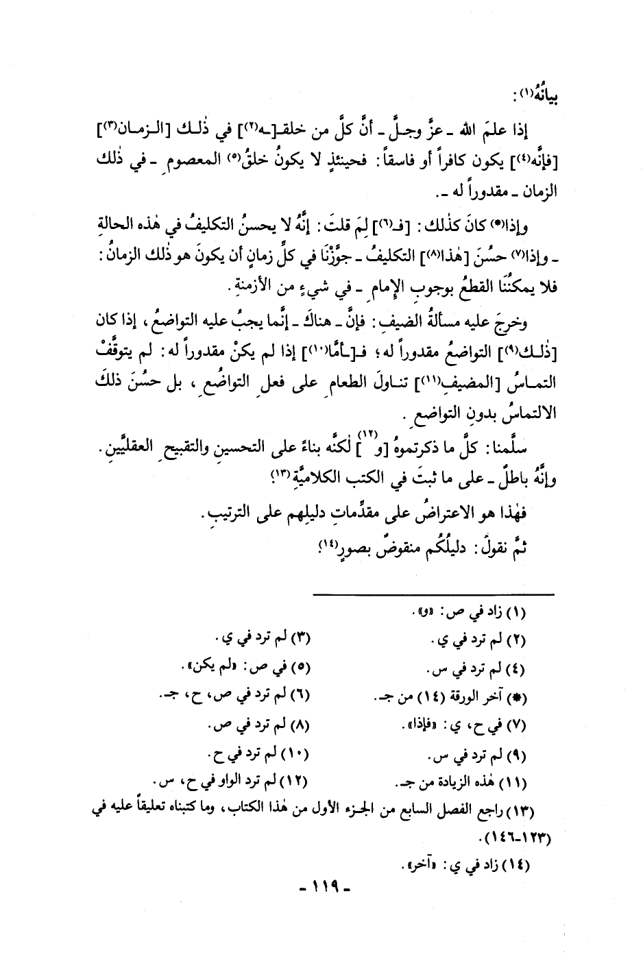 بيانه إذا علم الله عز وجل أن كل من خلقه في ذلك الزمان فإنه يكون كافرا أو فاسقا فحينئذ لا يكون خلق المعصوم في ذلك الزمان مقدورا له وإذا كان كذلك فلم قلت أنه لا يحسن التكليف في هذه الحالة وإذا حسن هذا التكليف جوزنا في كل زمان أن يكون هو ذلك الزمان فلا يمكننا القطع بوجوب الإمام في شئ من الأزمنة وخرج عليه مسألة الضيف فإن هناك إنما يجب عليه التواضع إذا كان ذلك التواضع مقدورا له فأما إذا لم يكن مقدورا له لم يتوقف التماس المضيف تناول الطعام على فعل التواضع بل حسن ذلك الالتماس بدون التواضع سلمنا كل ما ذكرتموه ولكنه بناء على التحسين والتقبيح العقليين وإنه باطل على ما ثبت في الكتب الكلامية