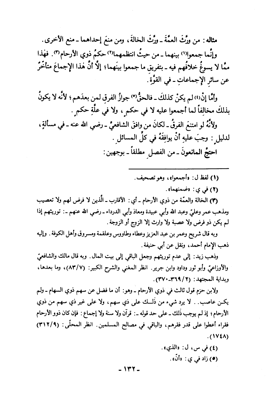 مثاله من ورث العمة ورث الخالة ومن منع إحداهما منع الأخرى وإنما جمعوا بينهما من حيث انتظمهما حكم ذوي الأرحام فهذا مما لا يسوغ خلافهم فيه بتفريق ما جمعوا بينهما إلا أن هذا الاجماع متأخر عن سائر الإجماعات في القوة وأما إن لم يكن كذلك فالحق جواز الفرق لمن بعدهم لأنه لا يكون بذلك مخالفا لما أجمعوا عليه لا في حكم ولا في علة حكم ولأنه لو امتنع الفرق لكان من وافق الشافعي رضي الله عنه في مسألة لدليل وجب عليه أن يوافقه في كل المسائل احتج المانعون من الفصل مطلقا بوجهين