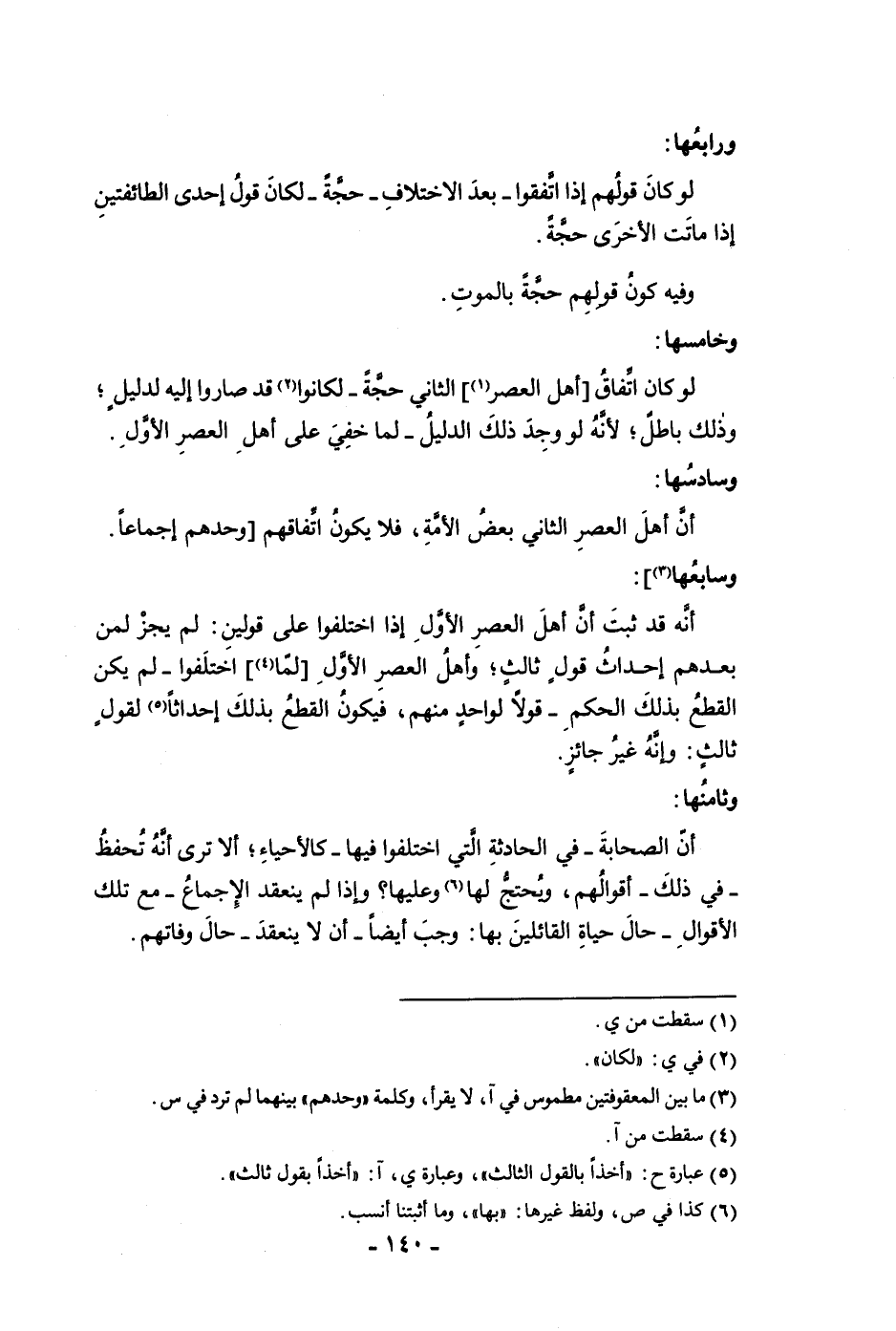 ورابعها لو كان قولهم إذا اتفقوا بعد الاختلاف حجة لكان قول إحدى الطائفتين إذا ماتت الأخرى حجة وفيه كون قولهم حجة بالموت وخامسها