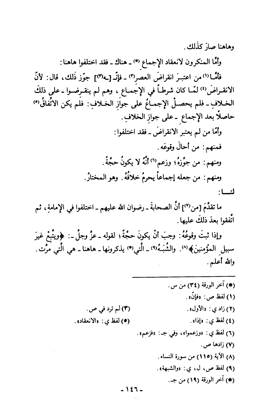 وأما المنكرون لانعقاد الإجماع هناك فقد اختلفوا ها هنا فأما من اعتبر انقراض العصر فإنه جوز ذلك قال لأن الانقراض لما كان شرطا في الإجماع وهم لم ينقرضوا على ذلك الخلاف فلم يحصل الإجماع على جواز الخلاف فلم يكن الاتفاق حاصلا بعد الإجماع على جواز الخلاف وأما من لم يعتبر الانقراض فقد اختلفوا فمنهم من أحال وقوعه ومنهم من جوزه وزعم أنه لا يكون حجة ومنهم من جعله إجماعا يحرم خلافه وهو المختار لنا ما تقدم من أن الصحابة رضوان الله عليهم اختلفوا في الإمامة ثم اتفقوا بعد ذلك عليها وإذا ثبت وقوعه وجب أن يكون حجة لقوله عز وجل ويتبع غير سبيل المؤمنين والشبه التي يذكرونها ها هنا هي التي مرت والله أعلم