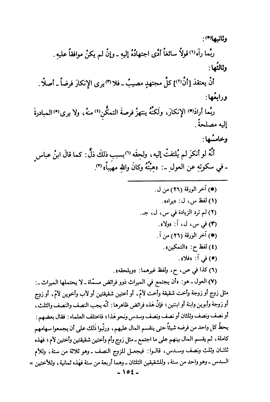 وثانيها ربما رآه قولا سائغا أدى اجتهاده إليه وإن لم يكن موافقا عليه وثالثها أن يعتقد أن كل مجتهد مصيب فلا يرى الإنكار فرضا أصلا ورابعها ربما أراد الإنكار ولكنه ينتهز فرصة التمكن منه ولا يرى المبادرة إليه مصلحة وخامسها أنه لو أنكر لم يلتفت إليه ولحقه بسبب ذلك ذل كما قال ابن عباس في سكوته عن العول هبته وكان والله مهيبا