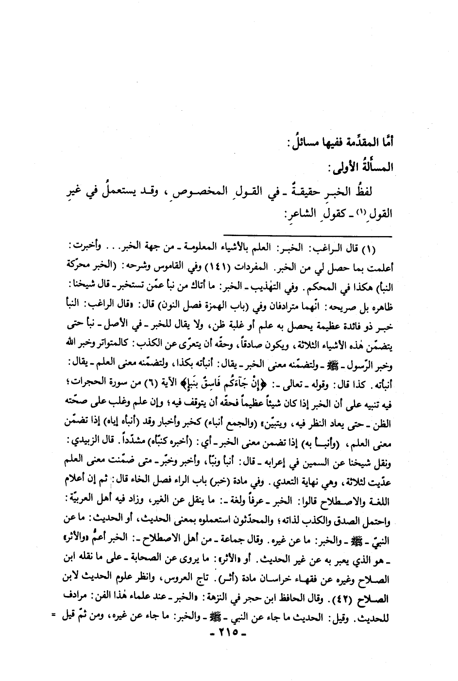 لفظ الخبر حقيقة في القول المخصوص وقد يستعمل في غير القول كقول الشاعر