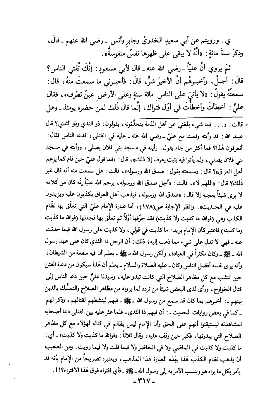 ى ورويتم هو عن أبي سعيد الخدري وجابر وأنس رضي الله عنهم قال وذكر سنة مائة أنه لا يبقى على ظهرها نفس منفوسة ثم يروي أن عليا رضي الله عنه قال لأبي مسعود إنك تفتي الناس