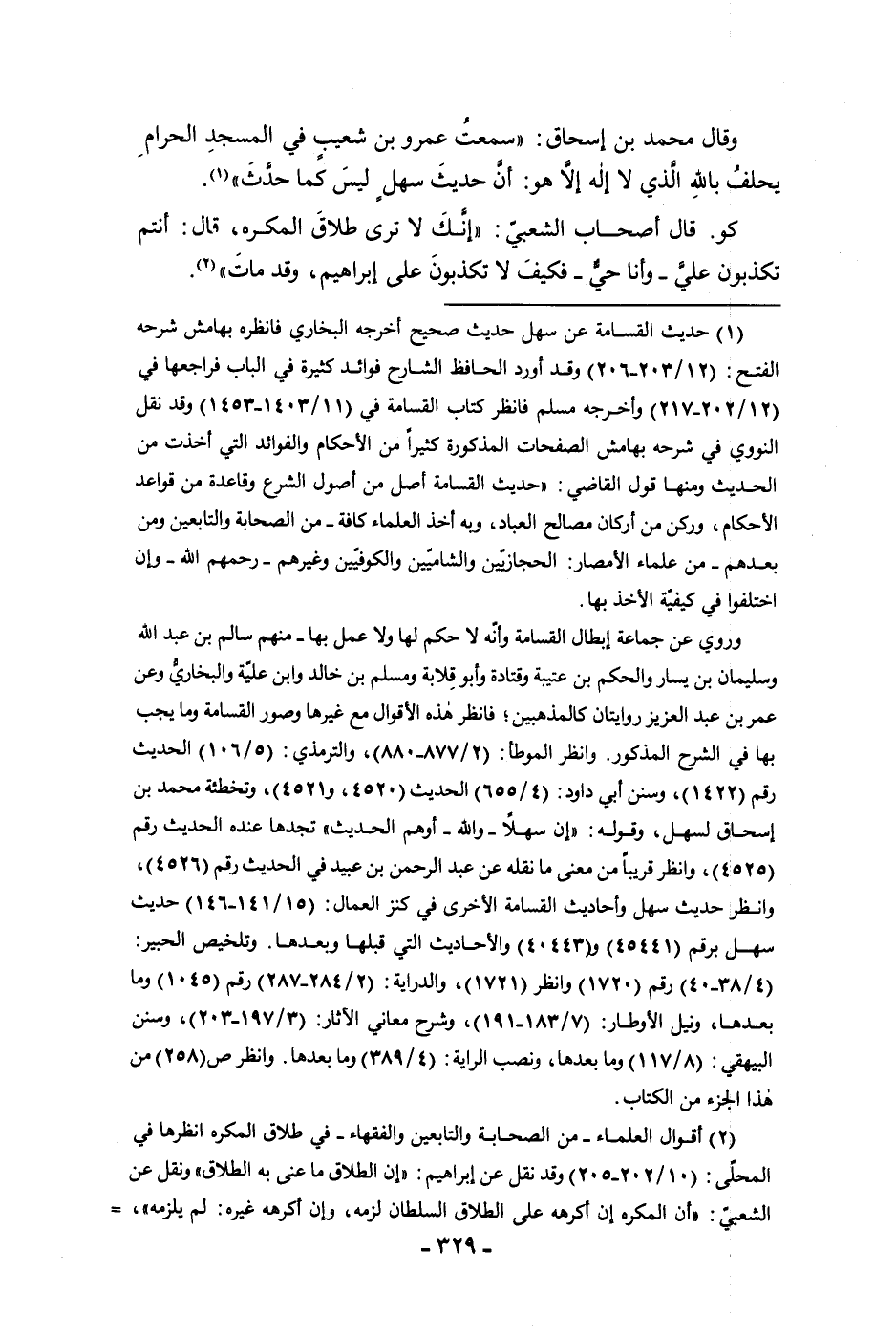 وقال محمد بن اسحاق سمعت عمرو بن شعيب في المسجد الحرام يحلف بالله الذي لا إله إلا هو أن حديث سهل ليس كما حدث كو قال أصحاب الشعبي إنك لا ترى طلاق المكره قال أنتم تكذبون علي وأنا حي فكيف لا تكذبون على إبراهيم وقد مات