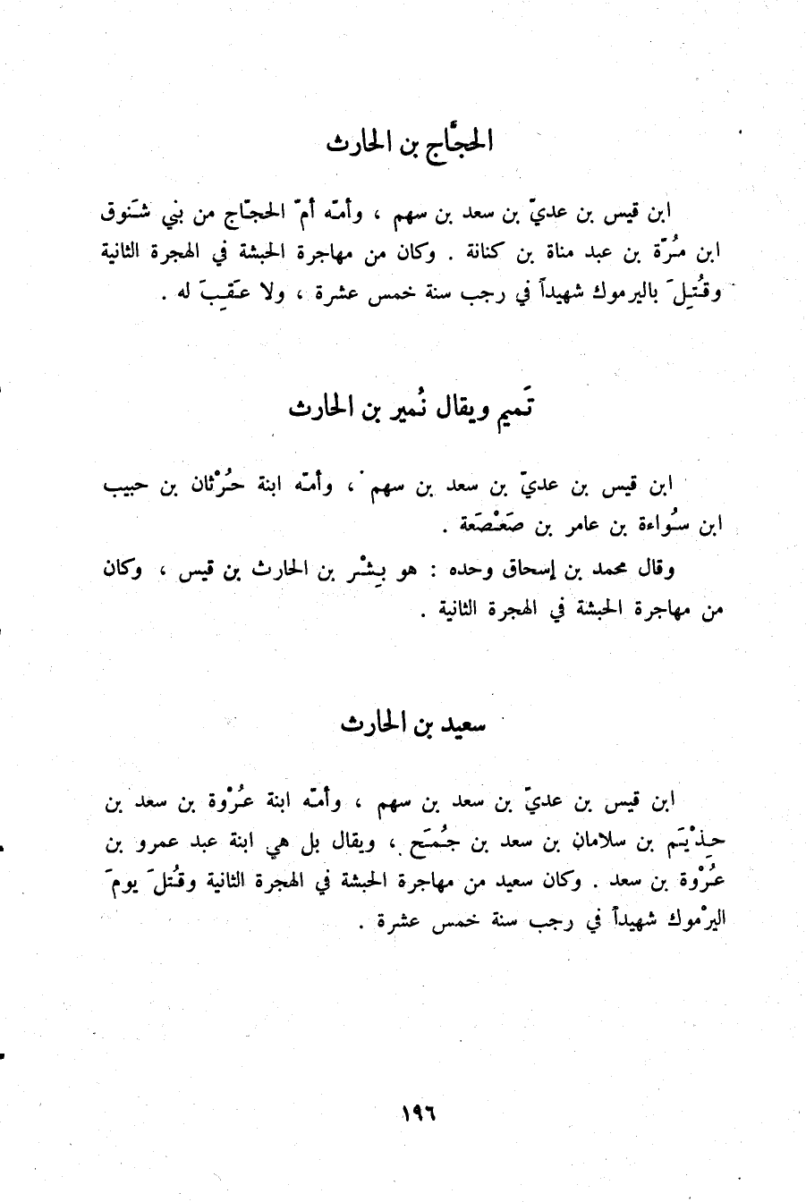§تَمِيمٌ وَيُقَال: نُمَيْرُ بْنُ الْحَارِثِ بْنِ قَيْسِ بْنِ عَدِيِّ بْنِ سَعْدِ بْنِ سَهْمٍ. وَأُمُّهُ ابْنَةُ حُرْثَانَ بْنِ حَبِيبِ بْنِ سُوَاءَةَ بْنَ عَامِرِ بْنِ صَعْصَعَةَ. وَقَالَ مُحَمَّدُ بْنُ إِسْحَاقَ وَحْدَهُ: هُوَ بِشْرُ بْنُ الْحَارِثِ بْنِ قَيْسِ. وَكَانَ مِنْ مُهَاجِرَةِ الْحَبَشَةِ فِي الْهِجْرَةِ الثَّانِيَةِ