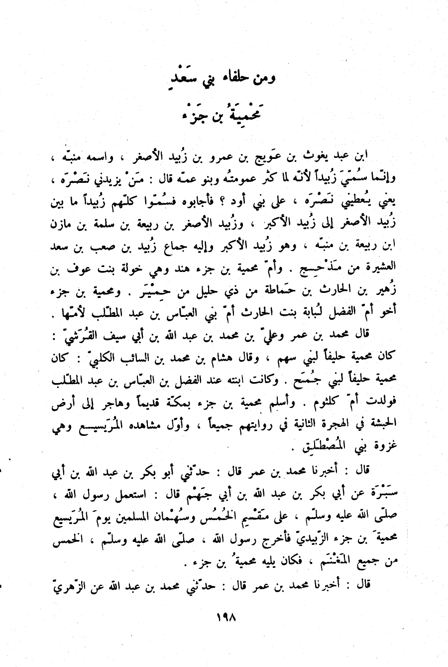 قَالَ: أَخْبَرَنَا مُحَمَّدُ بْنُ عُمَرَ قَالَ: حَدَّثَنِي مُحَمَّدُ بْنُ عَبْدِ اللَّهِ، عَنِ الزُّهْرِيِّ -[199]-، عَنْ عُرْوَةَ بْنِ الزُّبَيْرِ، وَعَبْدِ اللَّهِ بْنِ عَبْدِ اللَّهِ بْنِ الْحَارِثِ بْنِ نَوْفَلٍ قَالَا: جَعَلَ رَسُولُ اللَّهِ صلّى الله عليه وسلم عَلَى §خُمُسِ الْمُسْلِمِينَ مَحْمِيَّةَ بْنَ جَزْءٍ الزُّبَيْدِيَّ، وَكَانَتْ تُجْمَعُ إِلَيْهِ الْأَخْمَاسُ