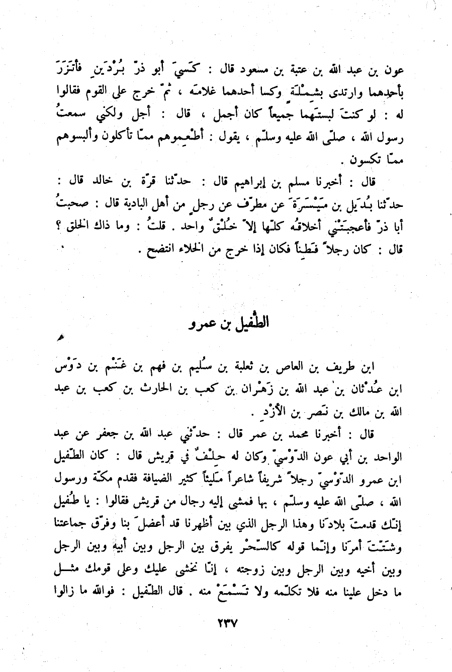 §الطُّفَيْلُ بْنُ عَمْرِو بْنِ طَرِيفِ بْنِ الْعَاصِ بْنِ ثَعْلَبَةَ بْنِ سُلَيْمِ بْنِ فَهْمِ بْنِ غَنْمِ بْنِ دَوْسِ بْنِ عَدْنَانَ بْنِ عَبْدِ اللَّهِ بْنِ زهرانَ بْنِ كَعْبِ بْنِ الْحَارِثِ بْنِ كَعْبِ بْنِ عَبْدِ اللَّهِ بْنِ مَالِكِ بْنِ نَصْرِ بْنِ الْأَزْدِ