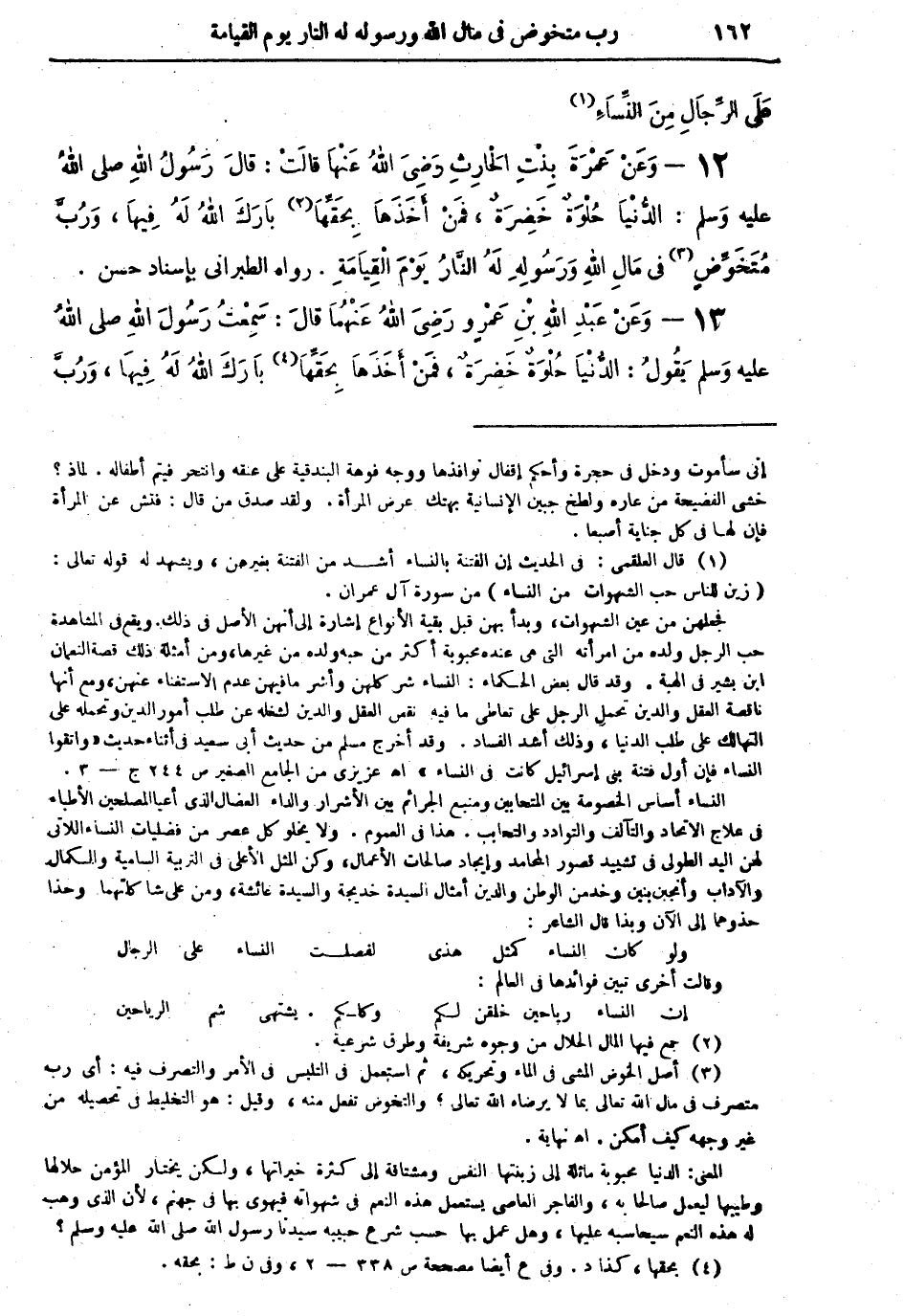 (¬1) قال العلقمي: في الحديث إن الفتنة بالنساء أشد من الفتنة بغيرهن، ويشهد له قوله تعالى: [زين للناس حب الشهوات من النساء] من سورة آل عمران.