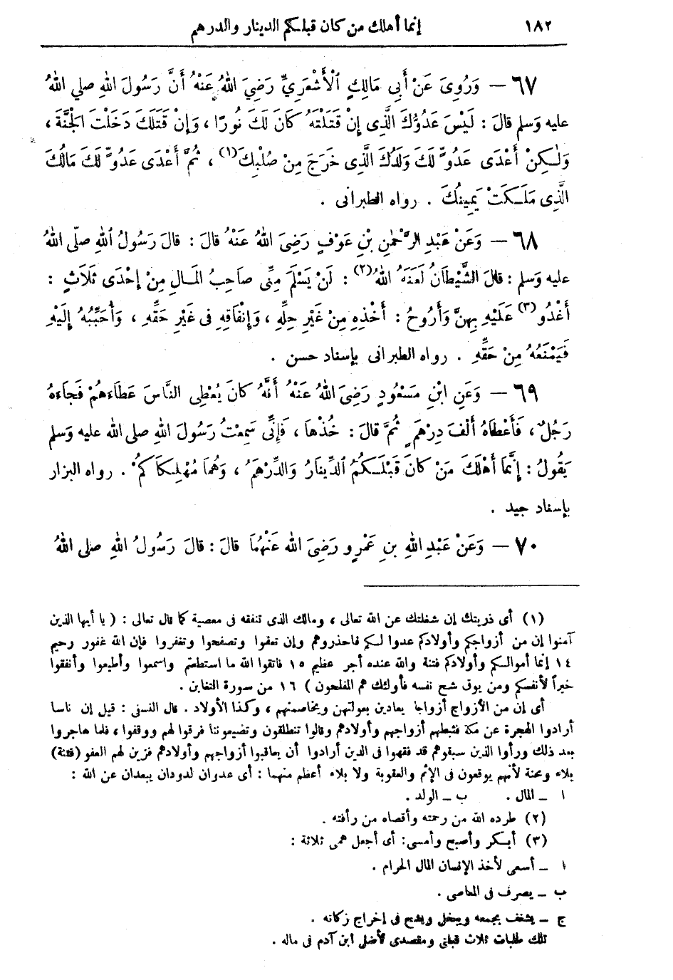 70 - وَعَنْ عَبْدِ اللهِ بْنِ عمْروٍ رَضِيَ اللهُ عَنْهُمَا قالَ: قالَ رَسُولُ اللهِ صلى اللهُ عليه