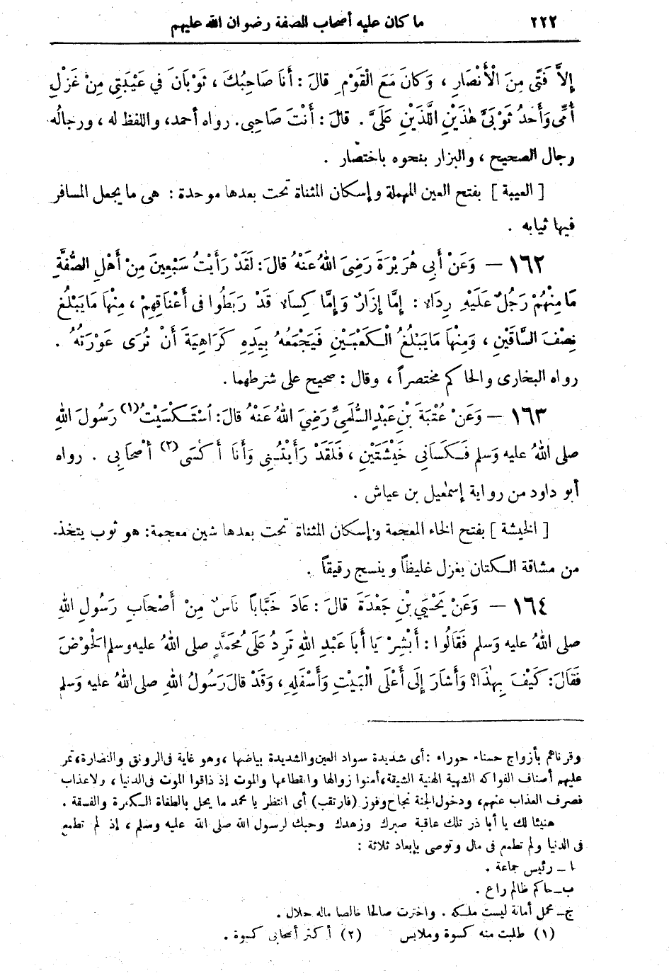 163 - وَعَنْ عُتْبَةَ بْنِ عَبْدٍ السُّلَمِيِّ رَضِيَ اللهُ عَنْهُ قالَ: اسْتَكْسَيْتُ (¬1) رَسُولَ اللهِ صلى اللهُ عليه وسلم فَكَسَانِي خَيْشَيْنِ، فَلَقَدْ رَأَيْتُنِي وَأَنَا أَكْسَى (¬2) أَصْحَابي. رواه أبو داود من رواية إسماعيل بن عياش.
