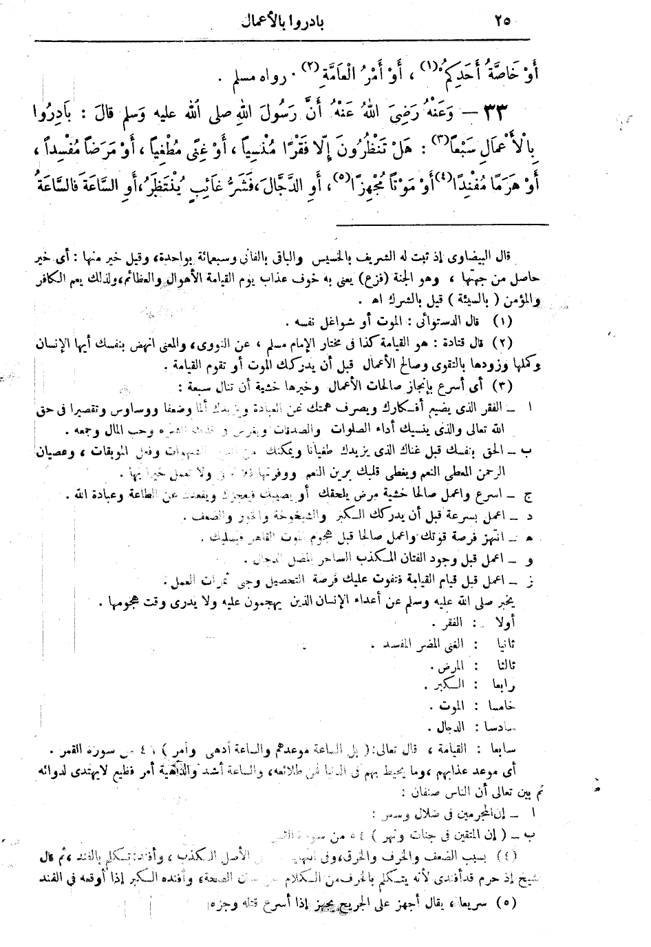 33 - وَعَنْهُ رَضِيَ اللهُ عَنْهُ أَنَّ رَسُولَ اللهِ صلى اللهُ عليه وسلم قالَ: بَادِرُوا بالأَعْمَالِ سَبْعَاً (¬3):