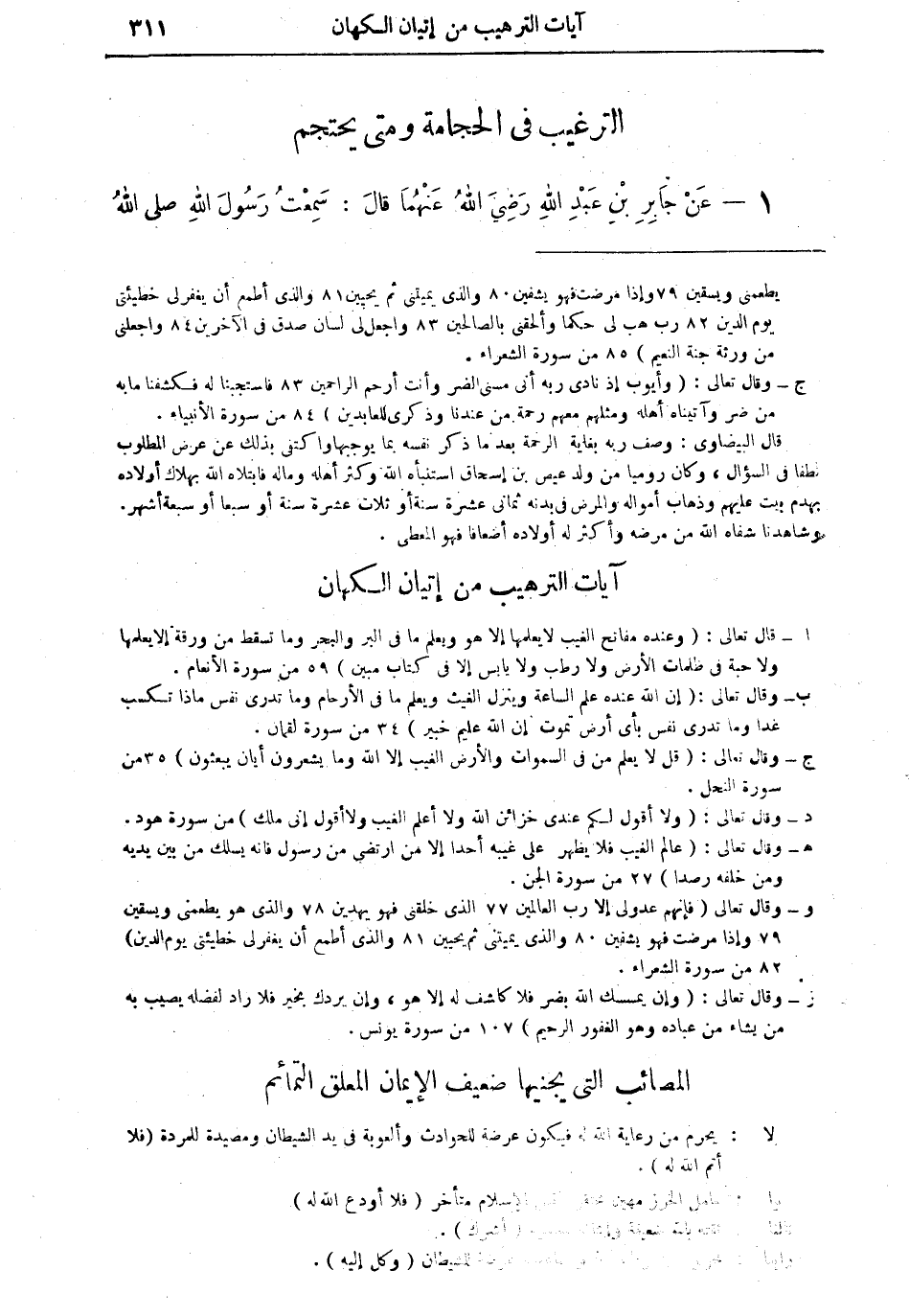 1 - عَنْ جَابِرِ بْنِ عَبْدِ اللهِ رَضِيَ اللهُ عَنْهُمَا قالَ: سَمِعْتُ رَسُولَ اللهِ صلى اللهُ
