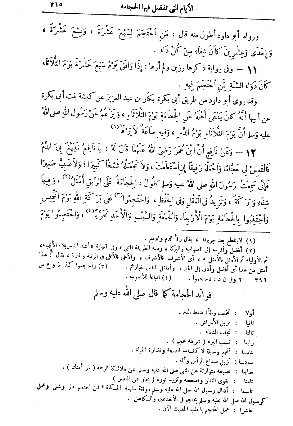 تاسعاً: أفعال رسول الله صلى الله عليه وسلم موفقة ملهمة الحكمة، فمن احتجم فاز وشفي وعمل كرسول الله صلى الله عليه وسلم (يحتجم في الأخدعين والكاهل).