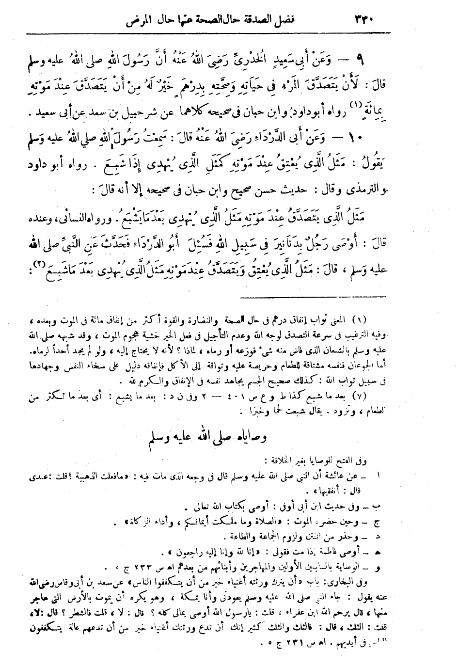 9 - وَعَنْ أَبِي سَعِيدٍ الْخُدْرِيِّ رَضِيَ اللهُ عَنْهُ أَنَّ رَسُولَ اللهِ صلى اللهُ عليه وسلم قالَ: لأَنْ يَتَصَدَّقَ الْمَرْءُ في حَيَاتِهِ وَصِحَّتِهِ بِدِرْهَمٍ خَيْرٌ لَهُ مِنْ أَنْ يَتَصَدَّقَ عِنْدَ مَوْتِهِ بِمِائَةٍ (¬1) رواه أبو داود وابن حبان في صحيحه كلاهما عن شرحبيل بن سعد عن أبي سعيد.