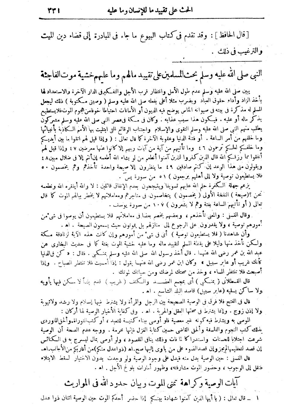 آيات الوصية وكراهة تمني الموت وبيان حدود الله في المواريث