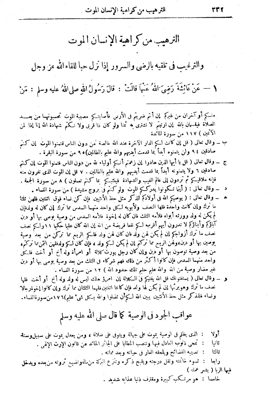 الترهيب من كراهية الإنسان الموت والترغيب في تلقيه بالرضا والسرور إذا نزل حبا للقاء الله عز وجل