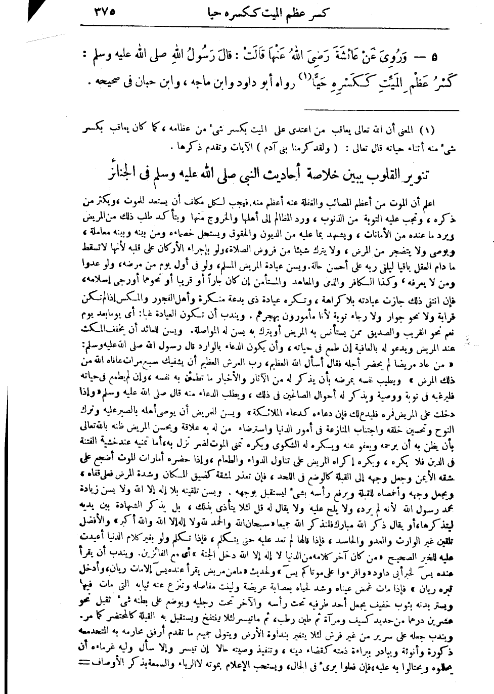 تنوير القلوب يبين خلاصة أحاديث النبي صلى الله عليه وسلم في الجنائز