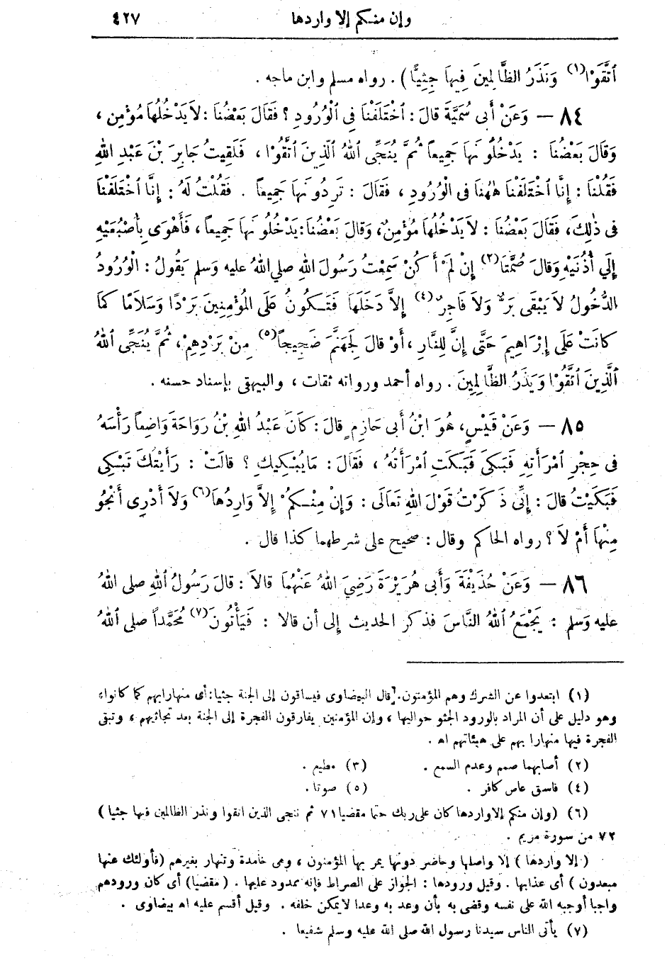 (¬6) [وإن منكم إلا واردها كان على ربك حتماً مقضياً (71) ثم ننجي الذي اتقوا ونذر الظالمين فيها جثيا (72)] من سورة مريم.