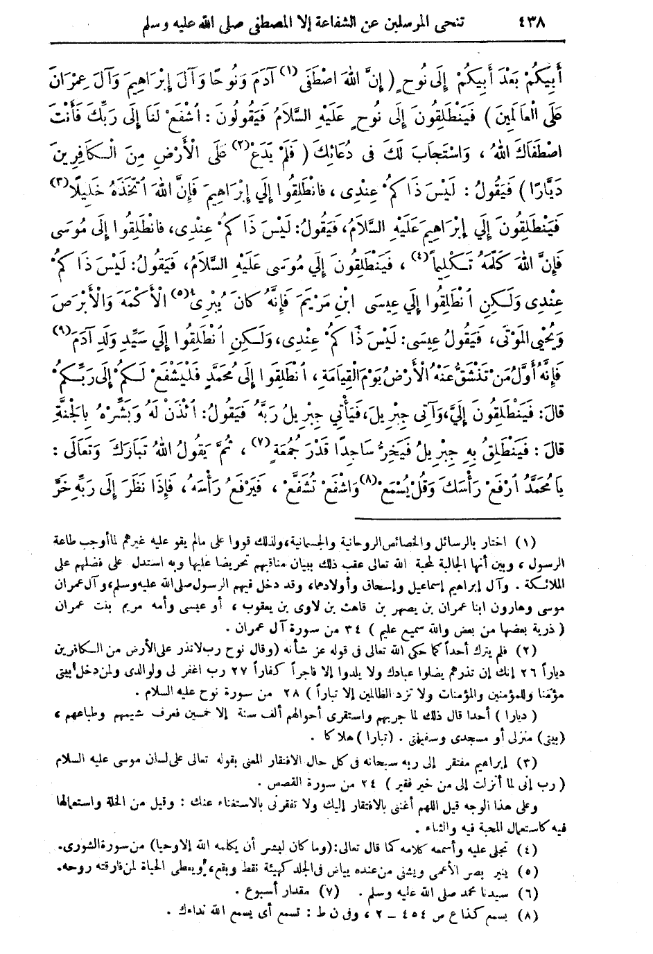 أَبِيْكُمْ بَعْدَ أَبِيكُمْ إِلى نُوحٍ [إِنَّ اللهَ اصْطَفَى (¬1) آدَمَ وَنُوحاً وَآلَ إِبْرَاهِيمَ وَآلَ عِمْرَانَ عَلَى الْعَالَمِينَ] فَيَنْطَلِقُونَ إِلى نُوحٍ عَلَيْهِ السَّلامُ فَيَقُولُونَ: اشْفَعْ لَنَا إِلى رَبِّكَ فَأَنْتَ اصْطَفَاكَ اللهُ، واسْتَجَابَ لَكَ في دُعَائِكَ [فَلَمْ يَدَعْ (¬2) عَلَى الأَرْضِ مِنَ الْكَافِرِينَ دَيَّارا] فَيَقُولُ: لَيْسَ ذَاكُمْ عِنْدِي، فانْطَلِقُوا إِلى إِبْرَاهِيمَ فَإِنَّ اللهَ اتَّخَذَهُ خَلِيلاً (¬3)