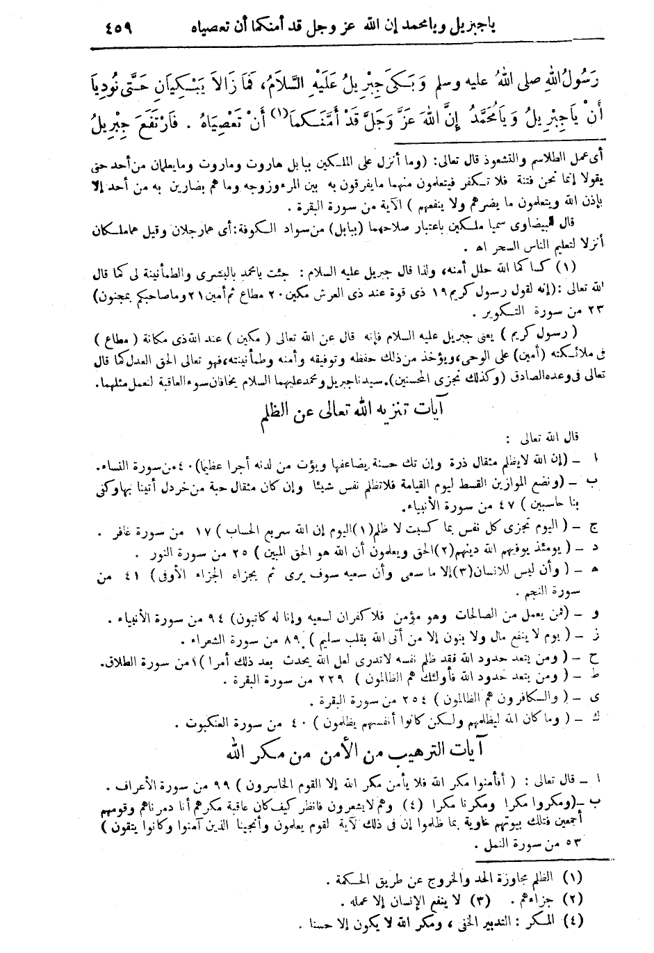 رَسُولُ اللهِ صلى اللهُ عليه وسَلَّم، وَبَكَى جِبْرِيلُ عَلَيْهِ السَّلامُ فَما زَالاَ يَبْكِيَانِ حَتَّى نُودِيَا أَنْ يَا جِبْرِيلُ وَيَا مُحَمَّدُ إِنَّ اللهَ عَزَّ وَجَلَّ قَدْ أَمَّنَكُمَا (¬1) أَنْ تَعْصِيَاهُ. فارْتَفَعَ جِبْرِيلُ