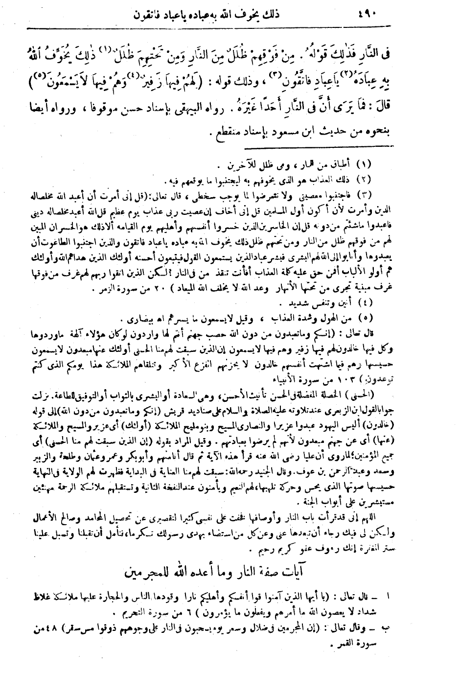 اللهم إني قد قرأت باب النار وأوصافها فخفت على نفسي كثيراً لتقصيري عن تحصيل المحامد وصالح الأعمال ولكن لي فيك رجاء أن تبعدها عني وعن كل من استضاء بهدي رسولك تكرماً فنأمل أن تقبلنا وتسبل علينا ستر المغفرة إنك رؤوف عفو كريم رحيم.