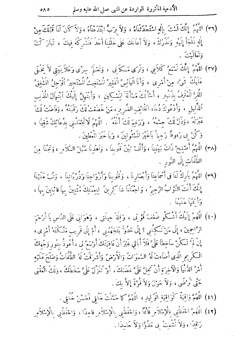 (42) اللَّهُمَّ احْفَظْنِي بالإِسْلامِ قائِماً، واحْفظْنِي بالإِسْلامِ قَاعِداً، واحْفَظْنِي بالإِسْلامِ رَاقِداً، ولا تُشْمِتْ بِي عَدُوّاً وَلا حَاسِداً.