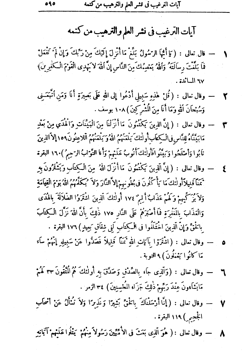آيات الترغيب في نشر العلم والترهيب من كتمه