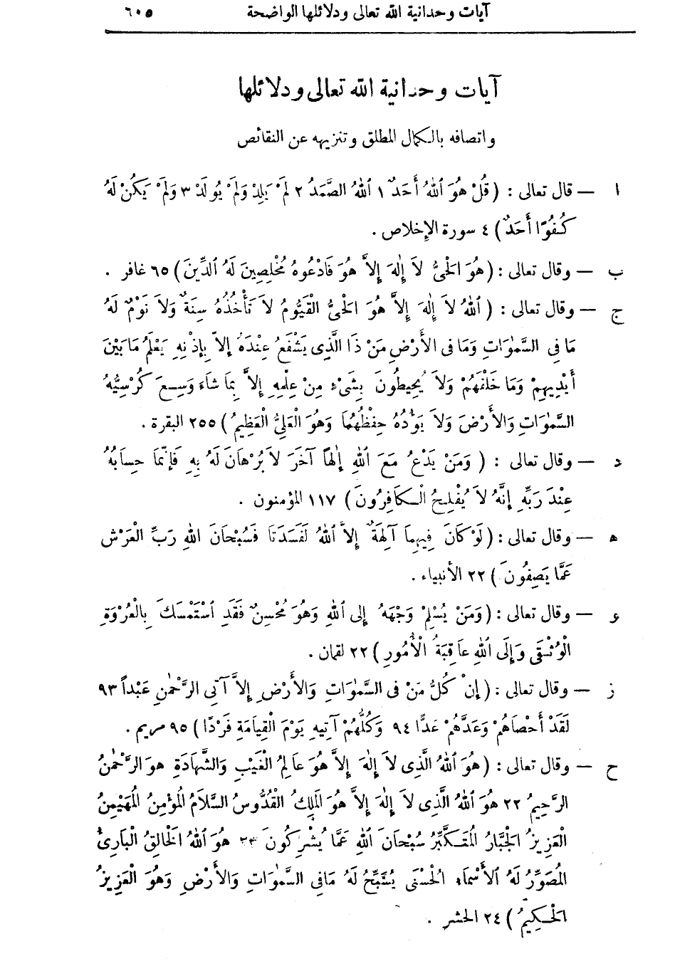 د - وقال تعالى: [وَمَنْ يَدْعُ مَعَ اللهِ إِلهاً آخَرَ لا بُرْهَانَ لَهُ بِهِ فَإِنَّمَا حِسَابِهُ عِنْدَ رَبِّهِ إِنَّهُ لا يُفْلِحُ الْكَافِرُونَ (117)] المؤمنون.