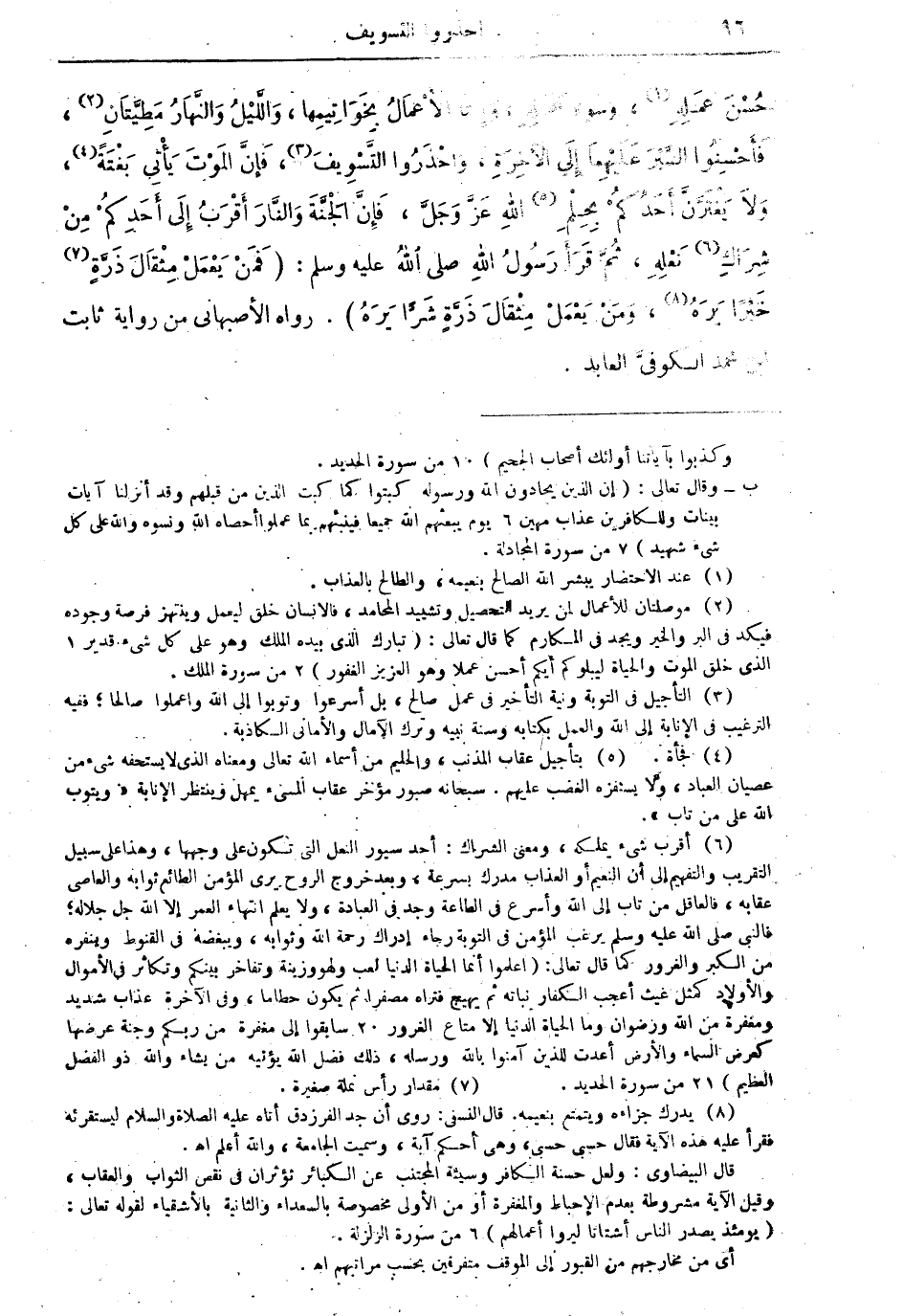 (¬3) التأجيل في التوبة ونية التأخير في عمل صالح، بل أسرعوا وتوبوا إلى الله واعملوا صالحاً؛ ففيه الترغيب في الإنابة إلى الله والعمل بكتابه وسنة نبيه وترك الآمال والأماني الكاذبة.