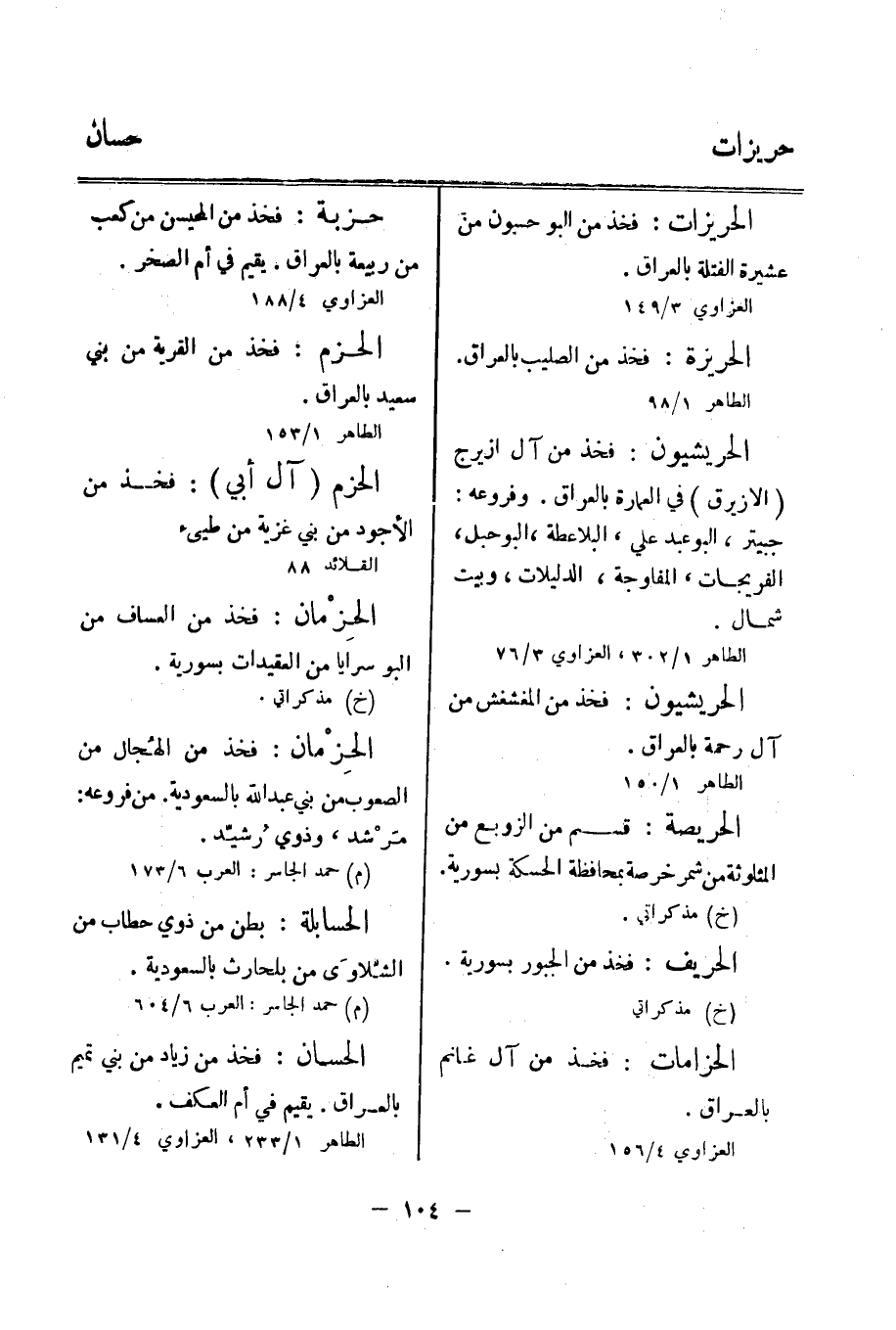 الطاهر 1/ 302، العزاوي 3/ 76