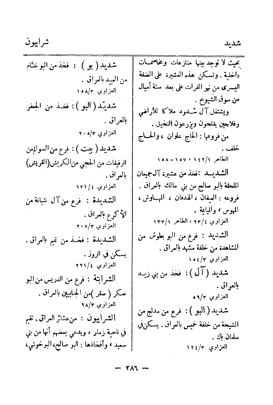 بحيث لا توجد بينها منازعات ومخاصمات داخلية. وتسكن هذه العشيرة على الضفة اليسرى من نهر الفرات على بعد ستة أميال من سوق الشيوخ.
