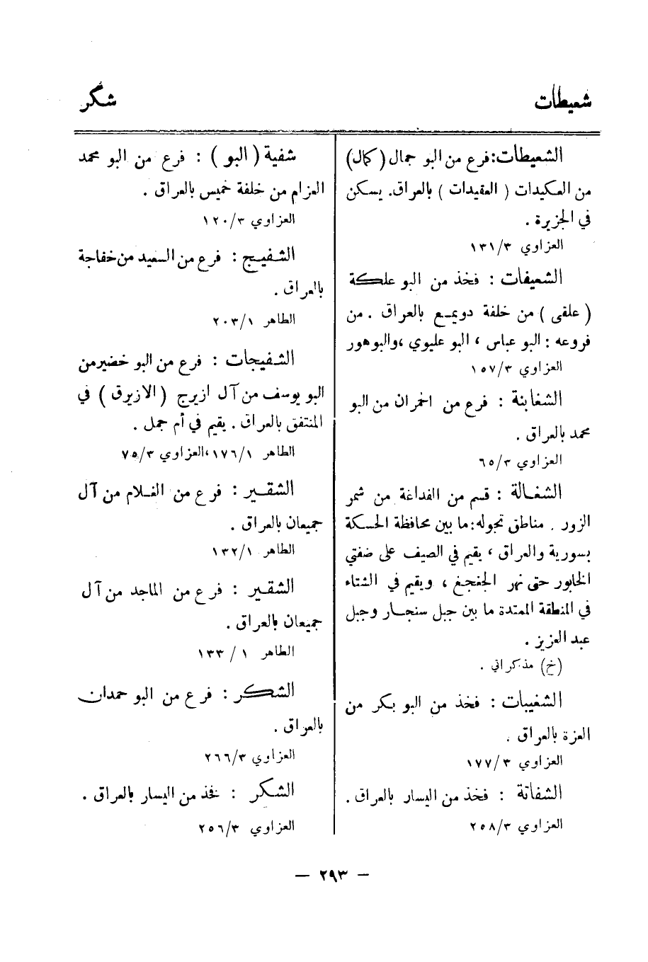 الطاهر 1/ 176، العزاوي 3/ 75