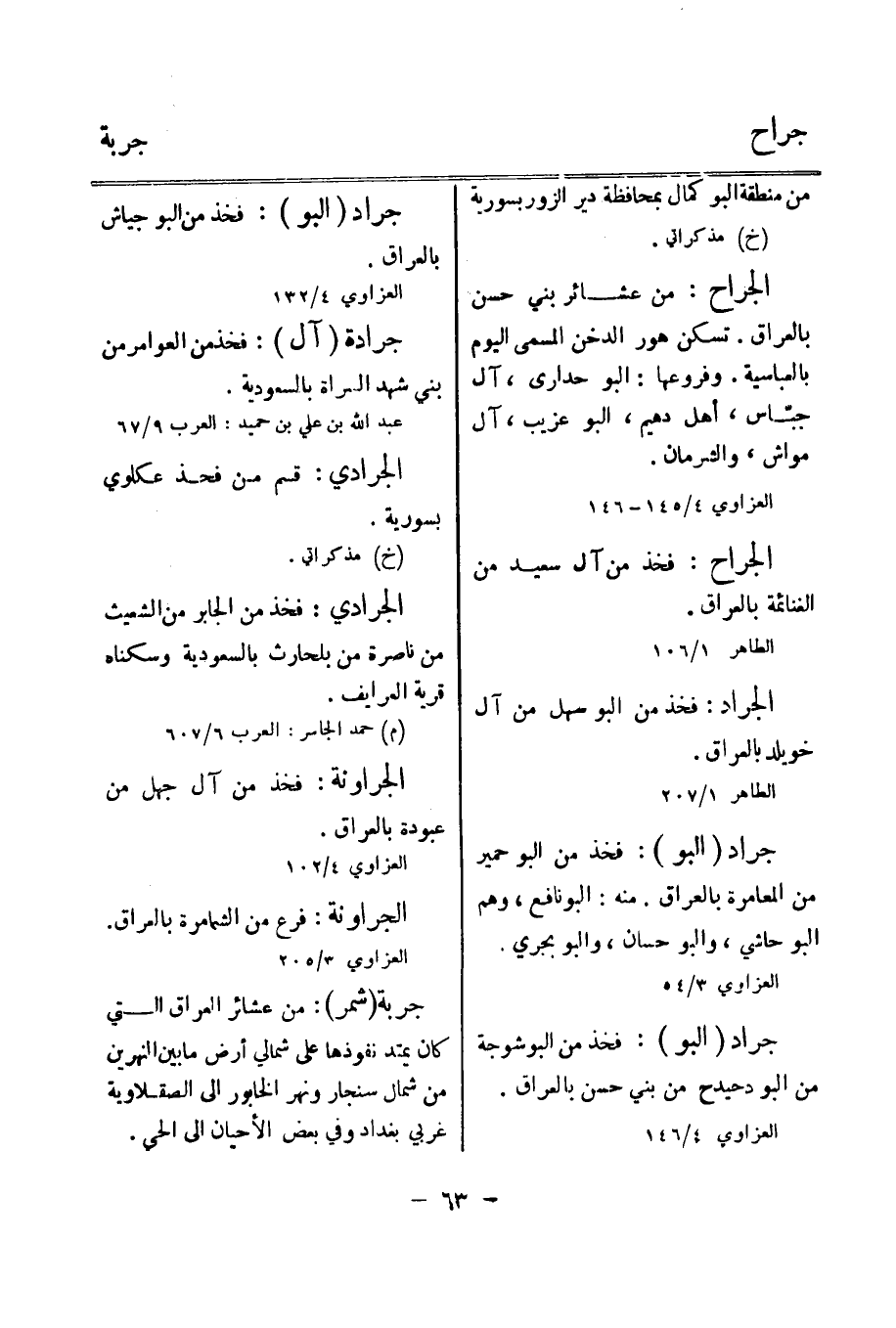 من عشائر بني حسن بالعراق. تسكن هور الدخن المسمى اليوم بالعباسية. وفروعها: البو حدارى، آل جبّاس، أهل دهيم، البو غريب، آل مواش، والثرمان.
